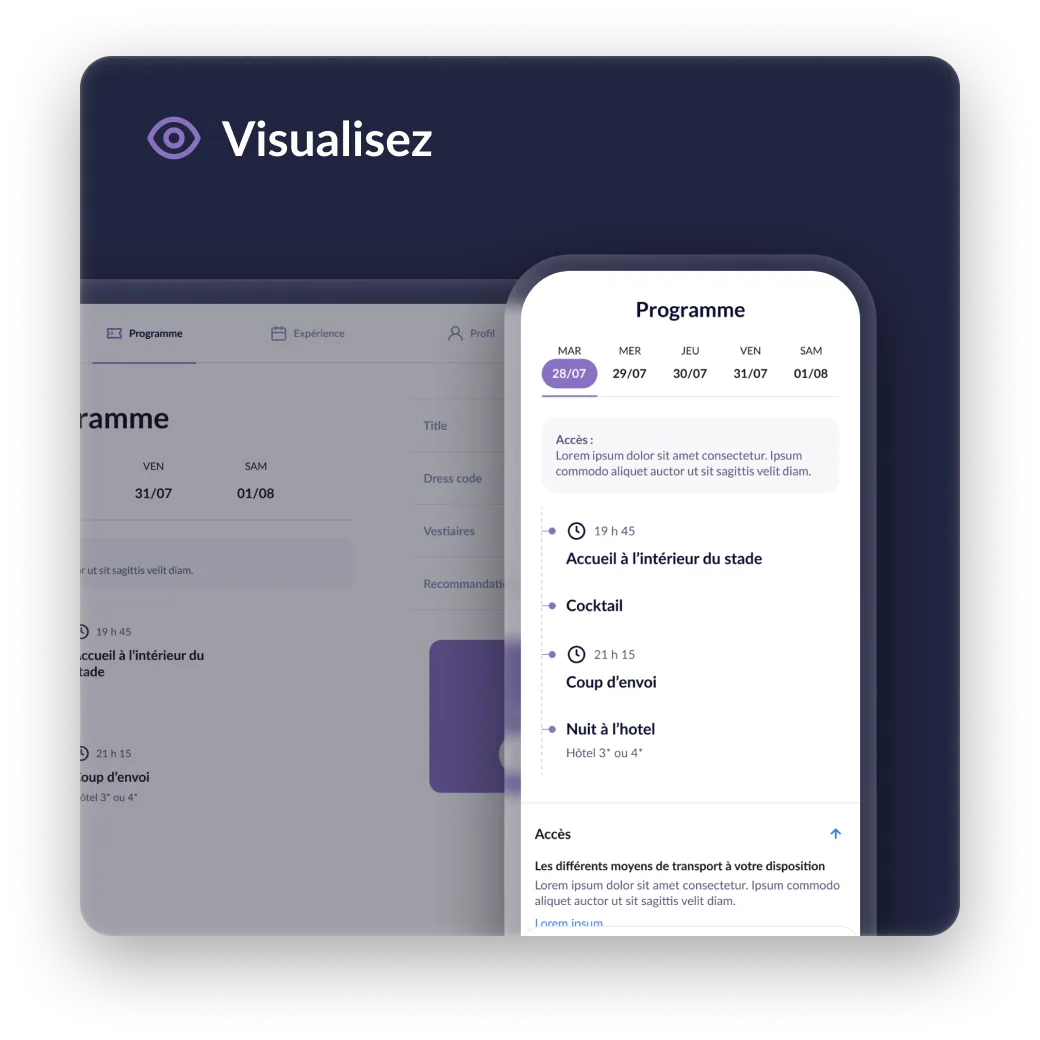 Avec Evenizer, gagnez du temps sur la gestion (TO, TP, loges, salons…) et offrez à vos clients et partenaires une expérience fluide et premium quelque soit le type d’événements (sports, concerts, conventions…).